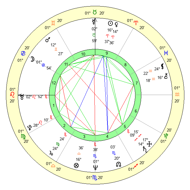 | Mars | 12 Gemini 26 | 25 Cancer 34 | 25 Cancer 6 |