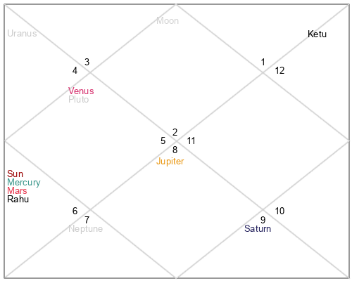| Rahu | 3 Libra 58 | 17 Pisces 25 | 0 Libra 29 |