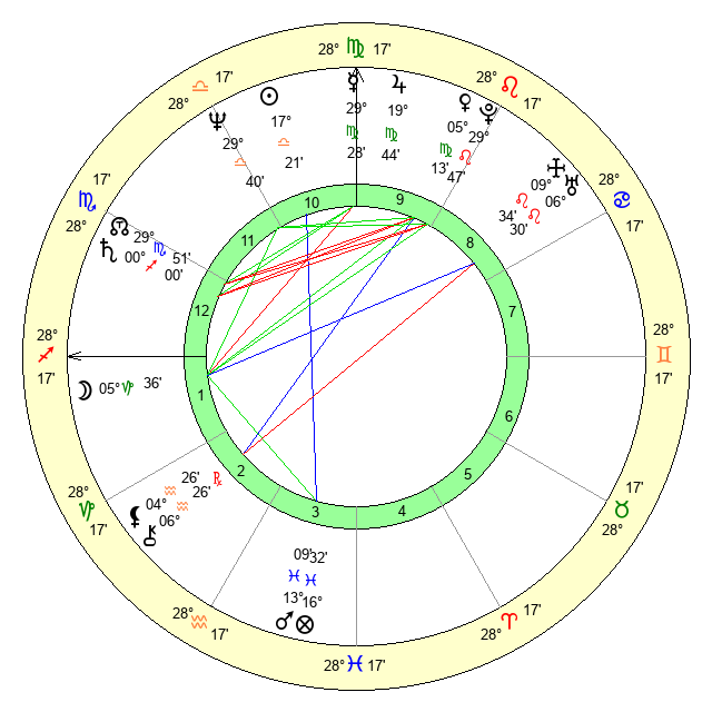 | Venus | 5 Virgo 13 | 26 Virgo 3 | 28 Scorpio 39 |