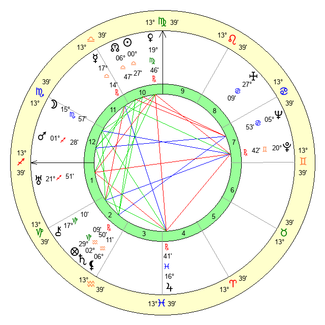 | Venus | 19 Virgo 45 | 6 Virgo 20 | 23 Sagittarius 10 |