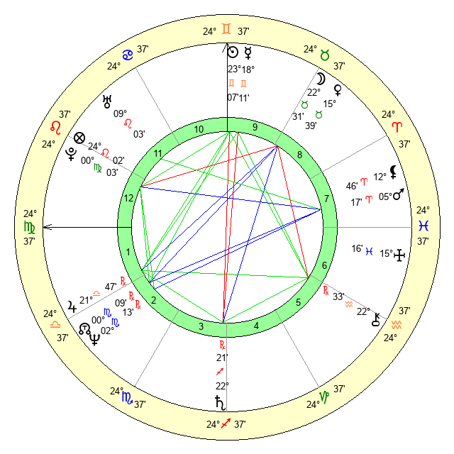 | Sun | 23 Gemini 7 | 23 Gemini 53 | 27 Leo 9 |