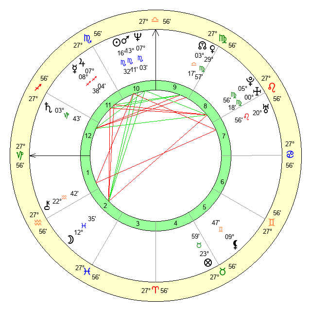 | Venus | 29 Virgo 57 | 3 Scorpio 28 | 14 Sagittarius 50 |
