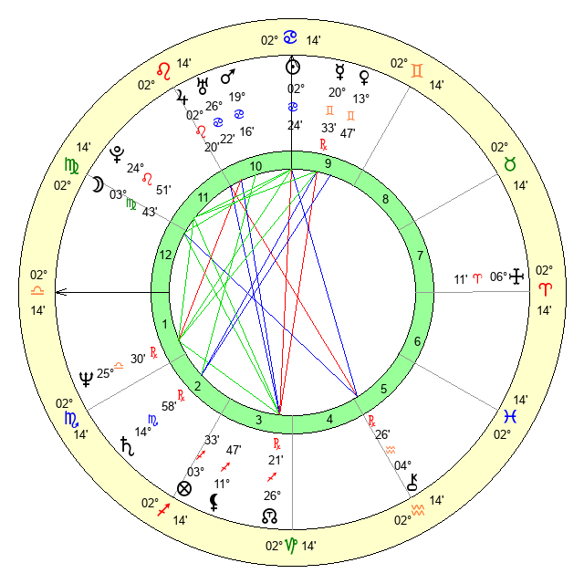 | Moon | 3 Virgo 52 | 23 Gemini 25 | 14 Pisces 6 |