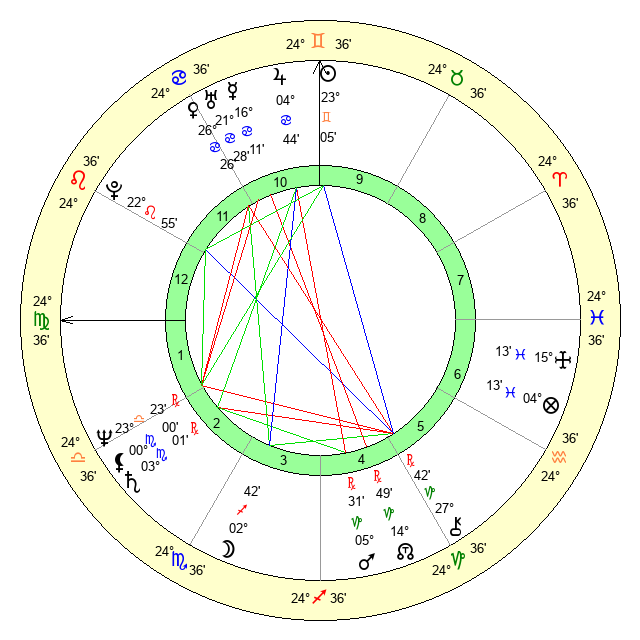 | Sun | 23 Gemini 5 | 23 Gemini 53 | 0 Virgo 58 |