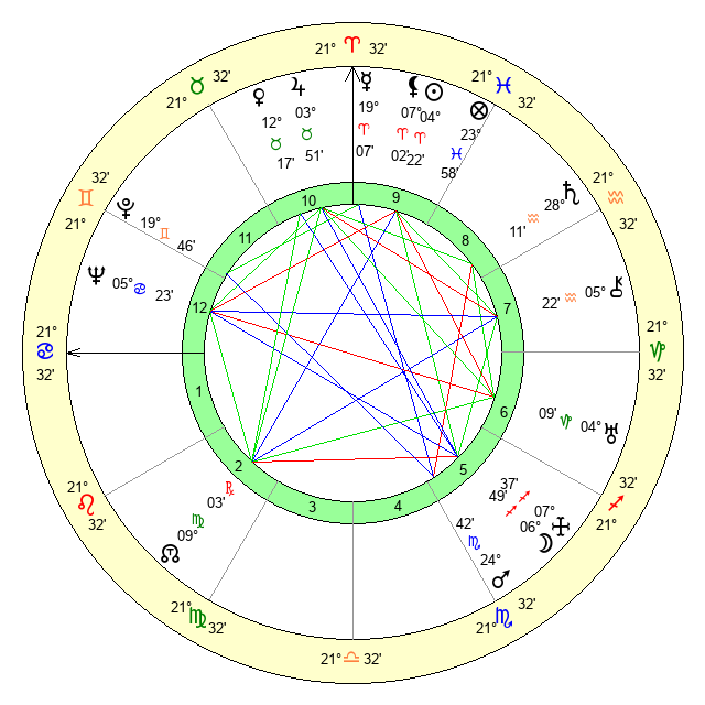 | Neptune | 5 Cancer 24 | 29 Pisces 49 | 8 Cancer 45 |