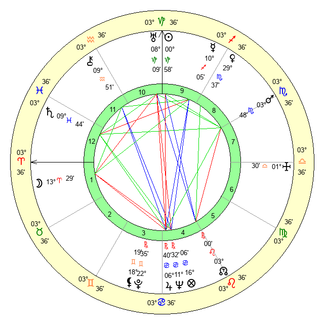 | Moon | 13 Aries 32 | 13 Aquarius 6 | 9 Leo 39 |