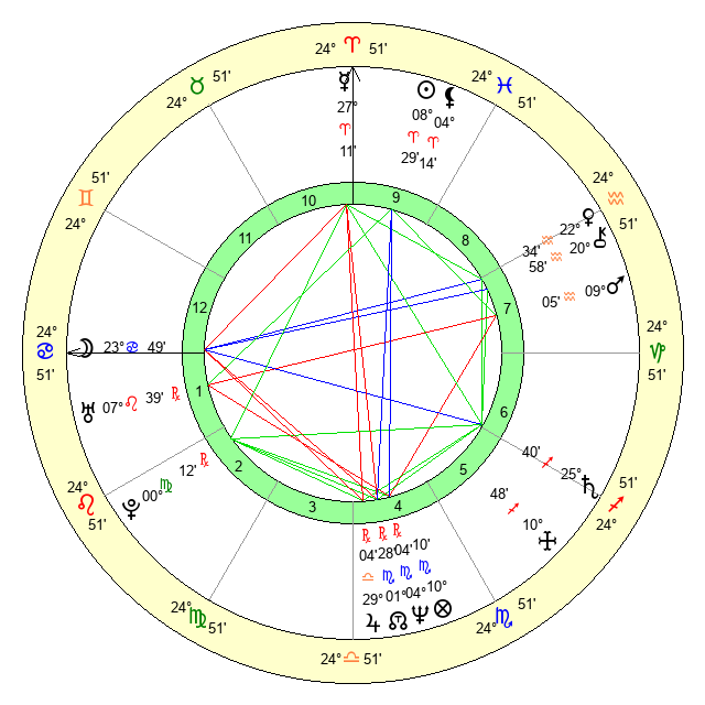 | Moon | 23 Cancer 49 | 12 Aries 48 | 20 Capricorn 20 |