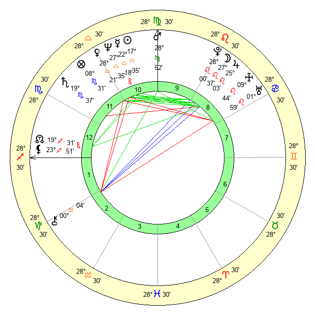 | Mars | 28 Virgo 52 | 13 Scorpio 13 | 14 Scorpio 4 |