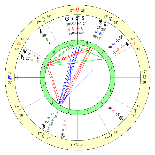 | Saturn | 23 Libra 45 | 0 Aries 34 | 1 Scorpio 41 |