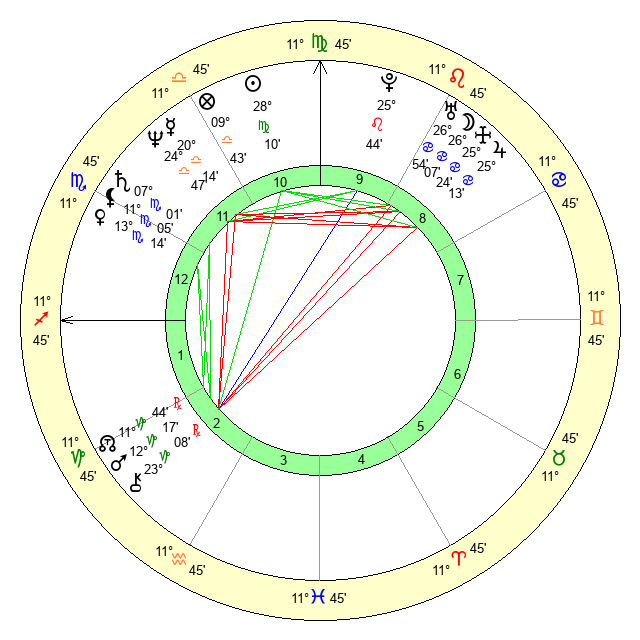 | Venus | 13 Scorpio 14 | 2 Virgo 40 | 15 Scorpio 1 |