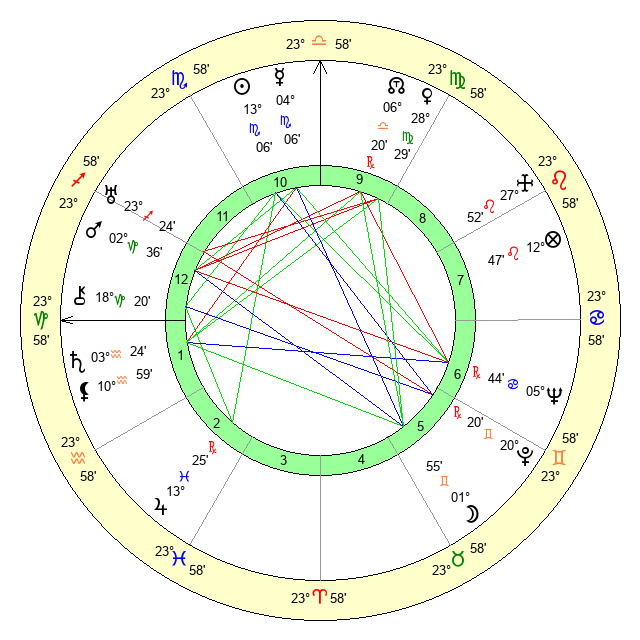 | Sun | 13 Scorpio 6 | 14 Scorpio 32 | 16 Pisces 43 |