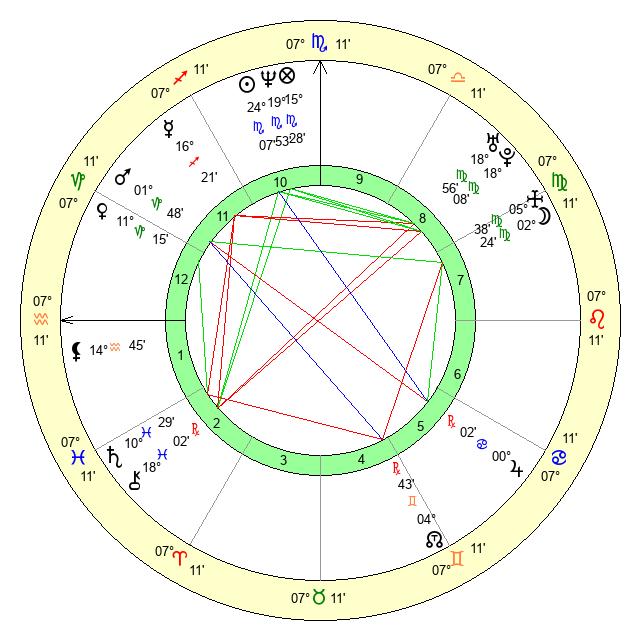 | Moon | 2 Virgo 18 | 15 Libra 38 | 17 Scorpio 53 |