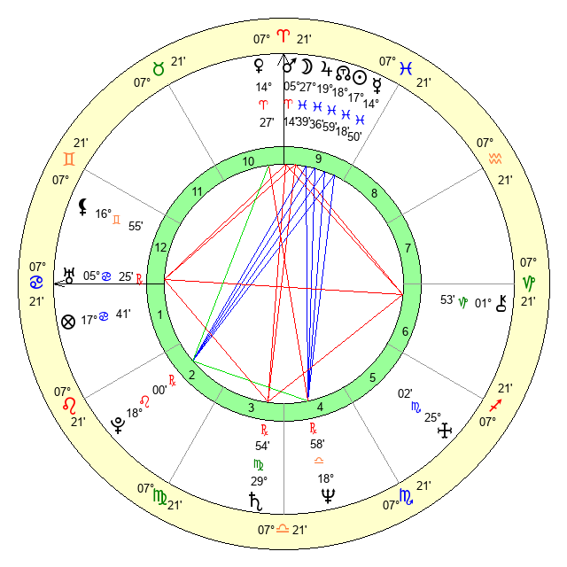 | Mars | 5 Aries 14 | 17 Cancer 57 | 0 Gemini 2 |