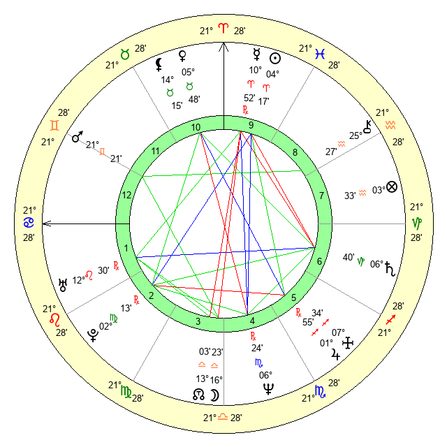 | Mars | 21 Gemini 21 | 21 Cancer 40 | 29 Cancer 10 |