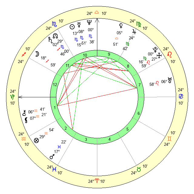 | Sun | 13 Scorpio 15 | 13 Scorpio 32 | 23 Capricorn 16 |