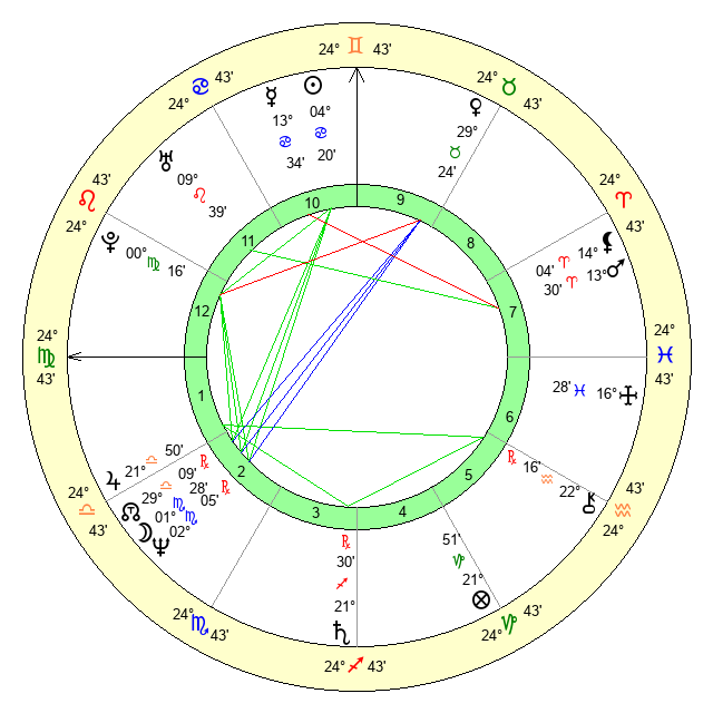 | Pluto | 0 Virgo 15 | 3 Aquarius 13 | 2 Virgo 14 |