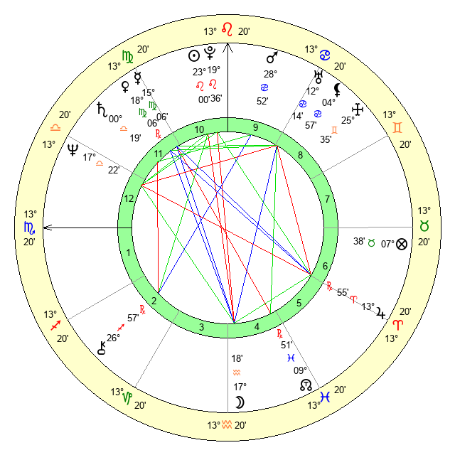 | Sun | 23 Leo 0 | 24 Leo 5 | 5 Scorpio 28 |