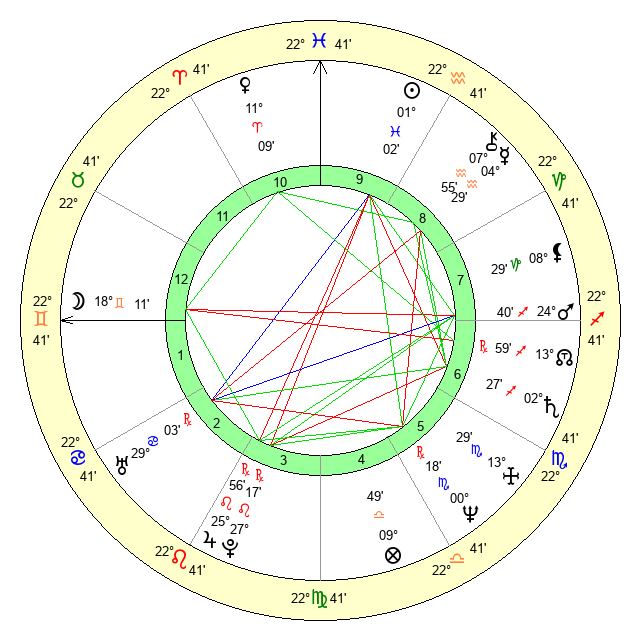 | Moon | 18 Gemini 23 | 1 Sagittarius 51 | 1 Capricorn 58 |
