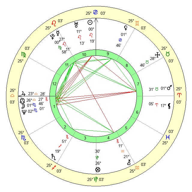 | Jupiter | 23 Libra 21 | 9 Cancer 55 | 4 Scorpio 1 |