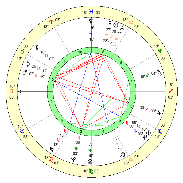 | Jupiter | 0 Sagittarius 23 | 11 Gemini 29 | 0 Sagittarius 2 |