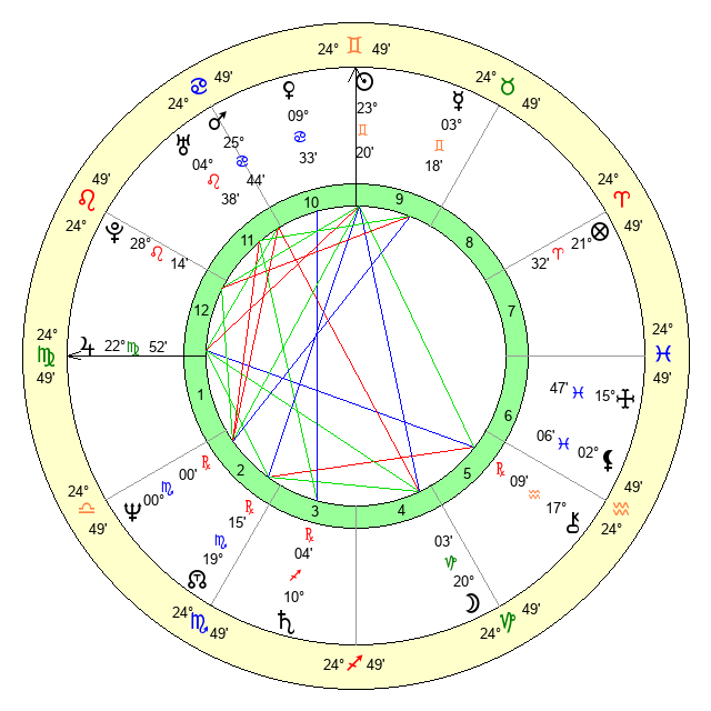 | Jupiter | 22 Virgo 43 | 1 Cancer 6 | 2 Libra 37 |