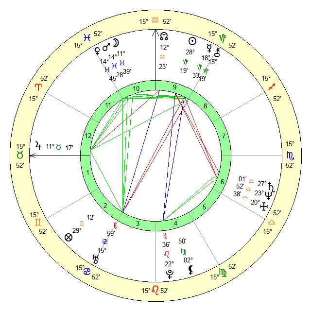 | Moon | 11 Pisces 29 | 24 Virgo 40 | 23 Libra 45 |