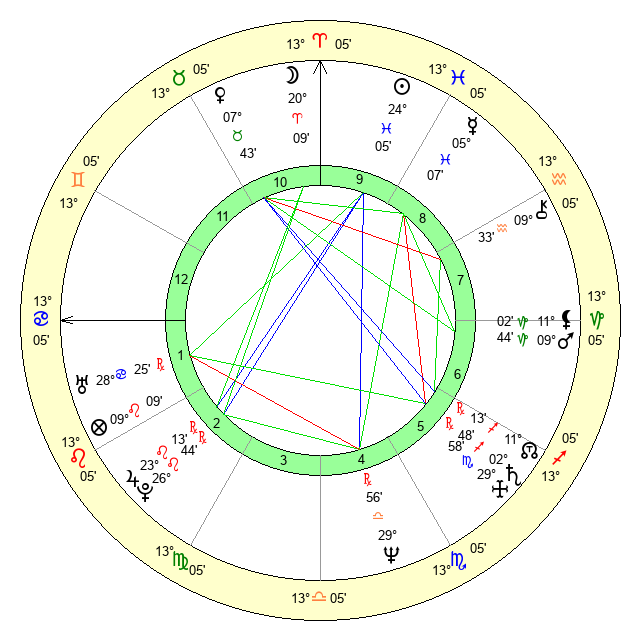 | Moon | 20 Aries 14 | 28 Virgo 52 | 9 Scorpio 10 |