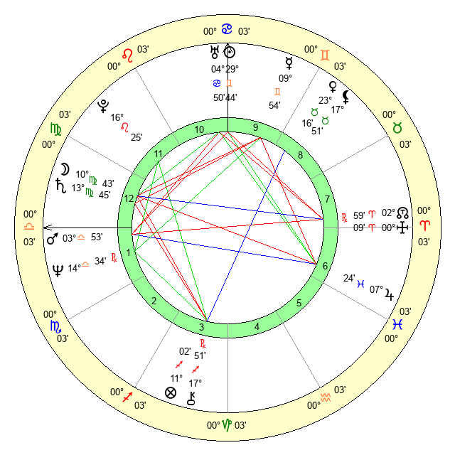 | Mars | 3 Libra 53 | 2 Virgo 27 | 15 Scorpio 44 |