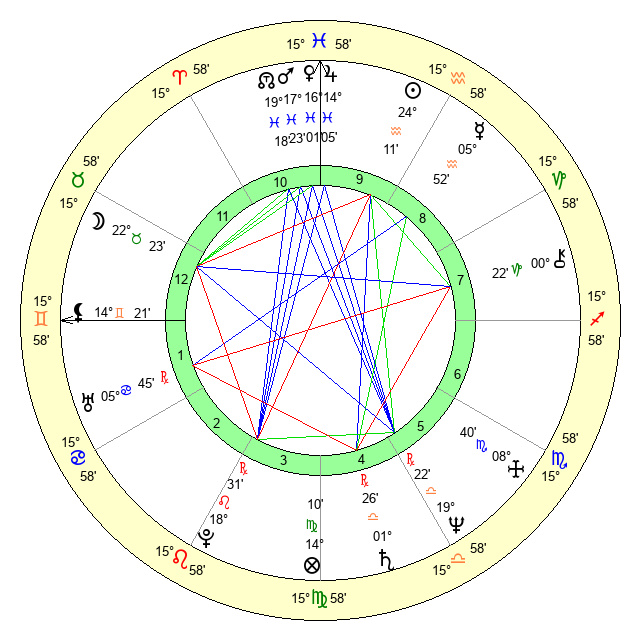 | Jupiter | 13 Pisces 59 | 11 Gemini 25 | 1 Aries 27 |