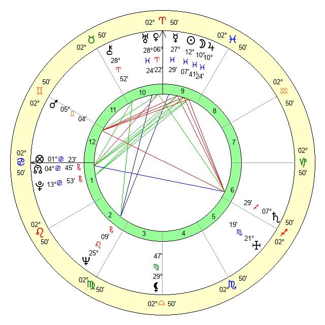| Sun | 12 Pisces 8 | 13 Pisces 22 | 17 Gemini 51 |