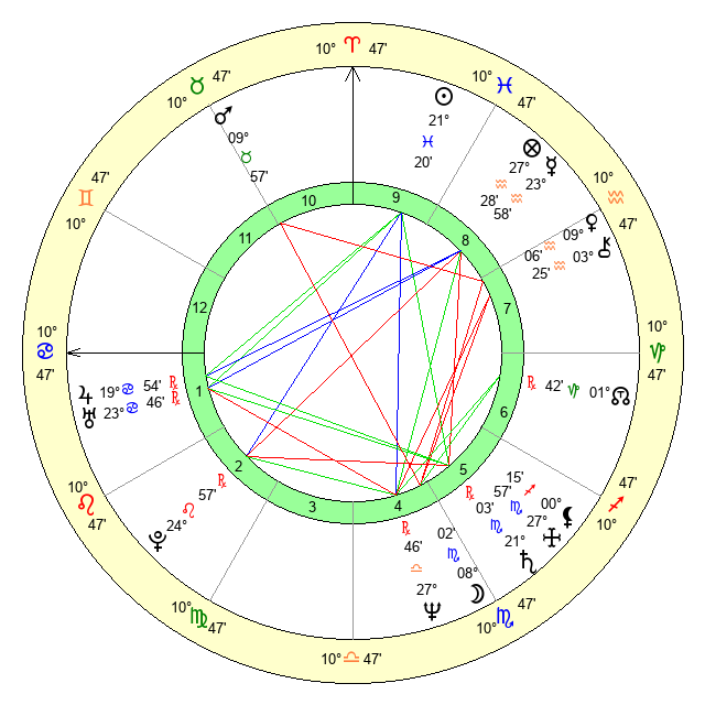 | Saturn | 21 Scorpio 34 | 22 Pisces 3 | 17 Scorpio 29 |