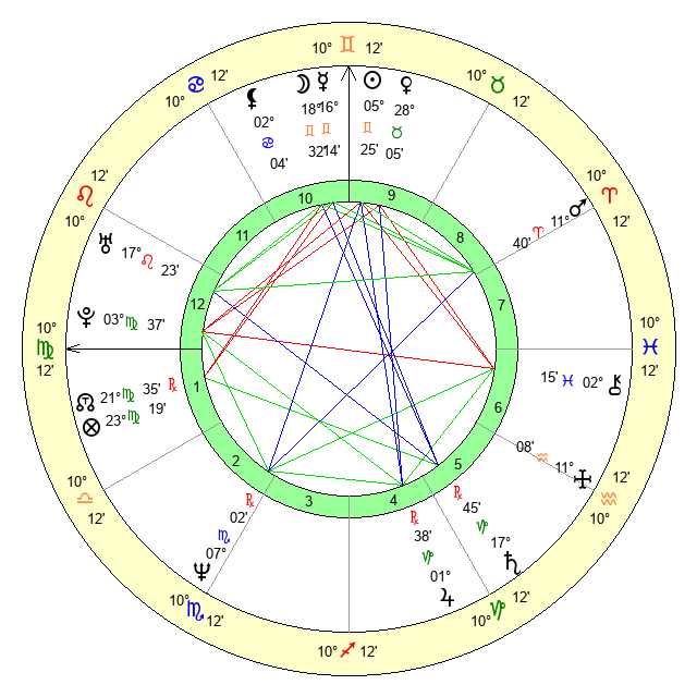 | Sun | 5 Gemini 25 | 5 Gemini 42 | 7 Leo 30 |