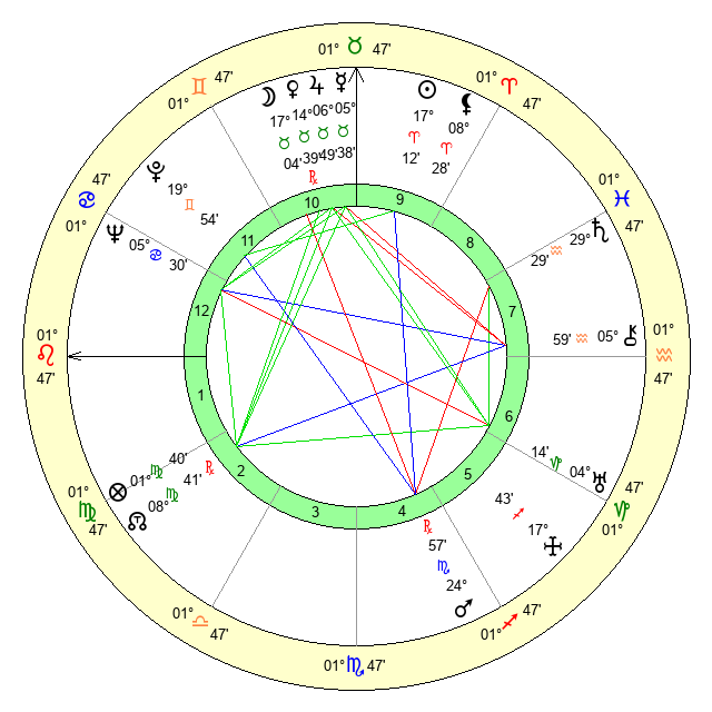 | Sun | 17 Aries 12 | 18 Aries 7 | 12 Leo 34 |
