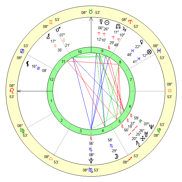 | Pluto | 8 Scorpio 55 | 3 Aquarius 44 | 7 Scorpio 53 |