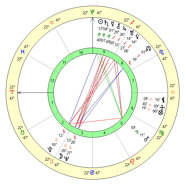 | Mars | 11 Virgo 58 | 14 Capricorn 46 | 29 Leo 9 |