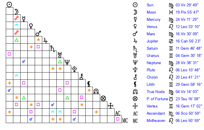 Mars | 16 Virgo 31 | 12 Libra 57 | 11 Scorpio 10 |