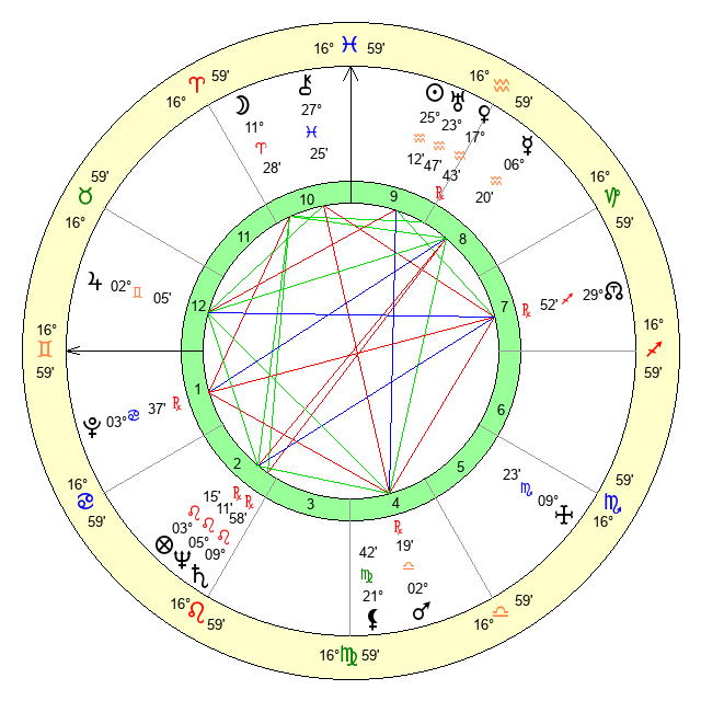 | Sun | 25 Aquarius 12 | 26 Aquarius 15 | 10 Gemini 22 |