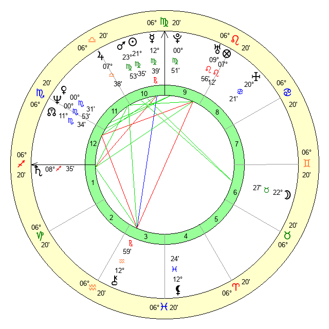 | Sun | 21 Virgo 36 | 22 Virgo 8 | 29 Scorpio 7 |