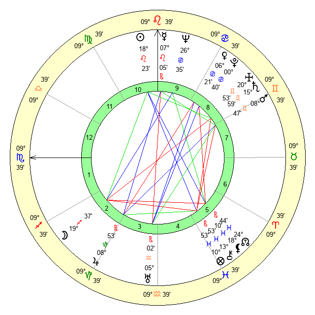 | Mercury | 7 Leo 5 | 4 Leo 15 | 22 Scorpio 44 |