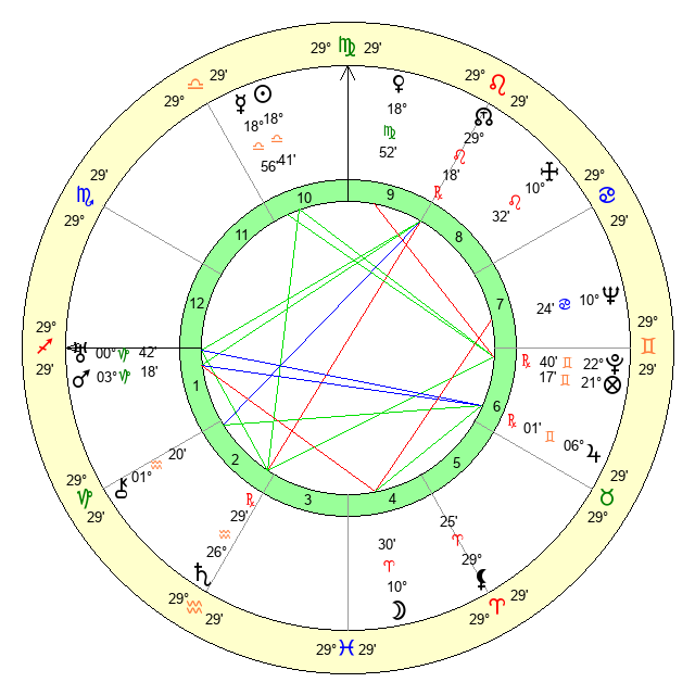 | Venus | 18 Virgo 53 | 28 Virgo 32 | 18 Aquarius 56 |