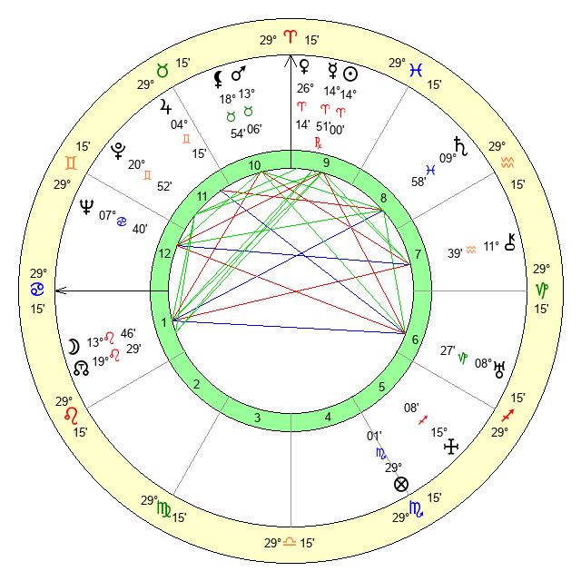 | Sun | 14 Aries 1 | 15 Aries 10 | 8 Leo 30 |