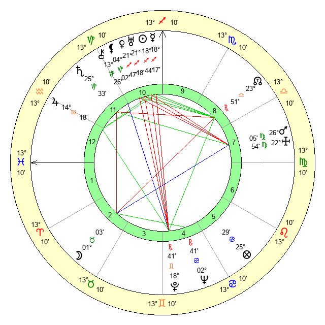 | Saturn | 26 Capricorn 0 | 25 Pisces 13 | 8 Aquarius 42 |