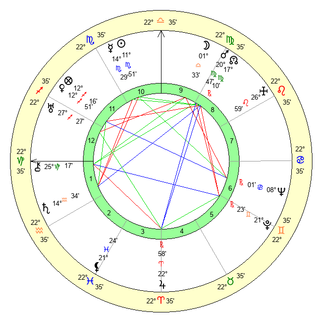 | Mars | 20 Virgo 48 | 0 Sagittarius 7 | 20 Scorpio 51 |
