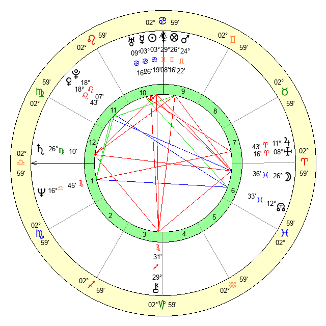 | Moon | 26 Pisces 39 | 8 Cancer 1 | 0 Sagittarius 25 |