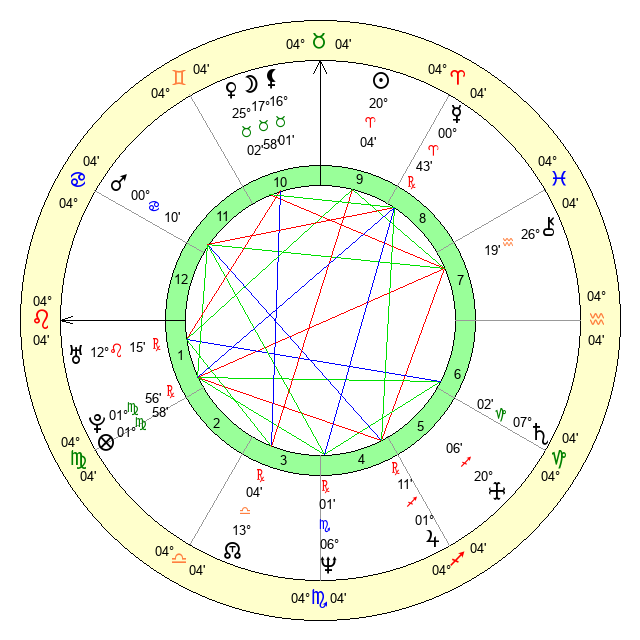 | Neptune | 6 Scorpio 0 | 0 Aries 24 | 4 Scorpio 25 |