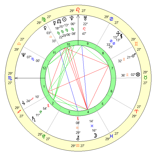 | Mercury | 18 Virgo 23 | 6 Virgo 5 | 12 Scorpio 41 |