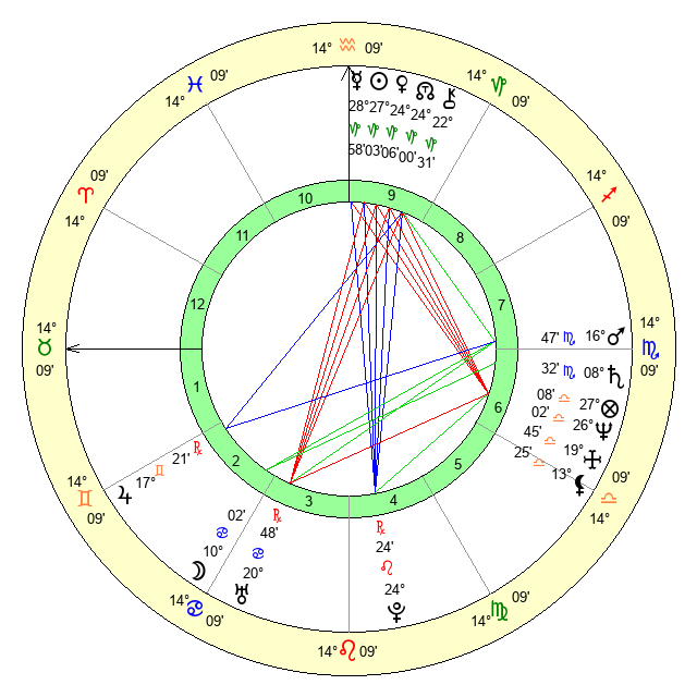 | Moon | 10 Cancer 1 | 12 Virgo 30 | 2 Aquarius 58 |
