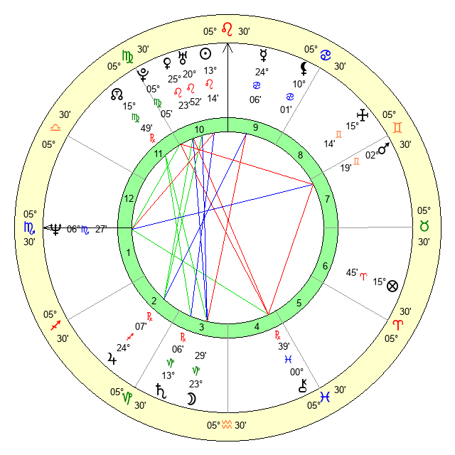 | Venus | 25 Leo 23 | 6 Cancer 26 | 15 Scorpio 19 |