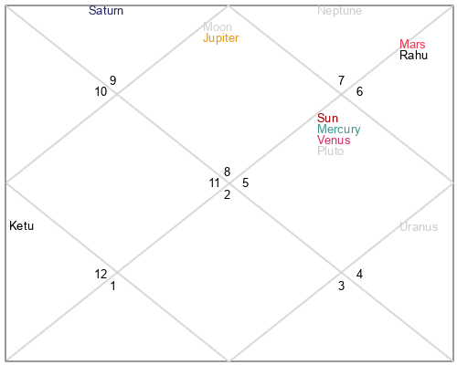 | Rahu | 4 Libra 43 | 18 Pisces 10 | 1 Libra 13 |