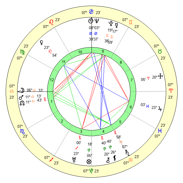 | Sun | 8 Cancer 39 | 10 Cancer 6 | 7 Scorpio 6 |